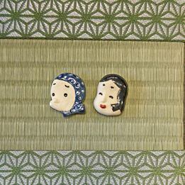 おかめ(右)とひょっとこ(左)の箸置きです。